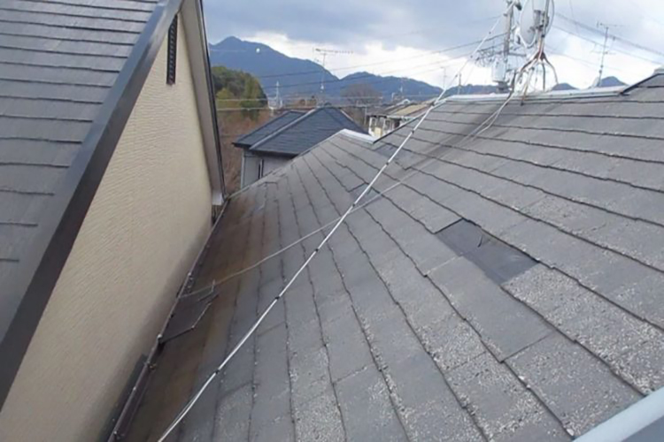 年数による劣化や災害などの影響により屋根材にひび割れが発生することがあります。特にスレート屋根が多く、そのひび割れの部分から雨水が侵入し雨漏りに繋がります。