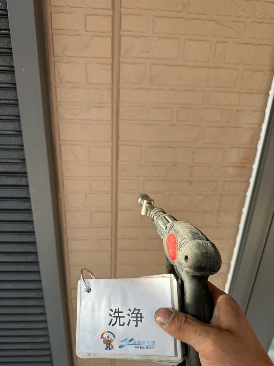 外壁塗装前に、外壁に付着している汚れや旧塗膜、埃、カビ等を高圧洗浄機を用いて洗浄します。これにより塗料の密着率が格段にUPし、美しい仕上がりにつながります。