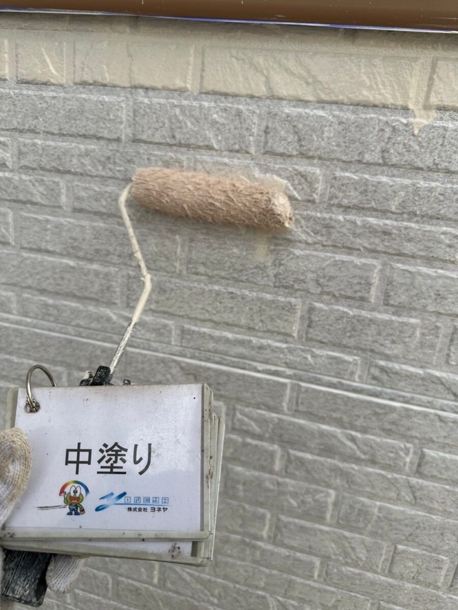 基本的には上塗り塗料と同じものを使用します。中塗りをすることにより塗膜が厚くなり強度が増し、さらに強く美しい外壁へと導きます。