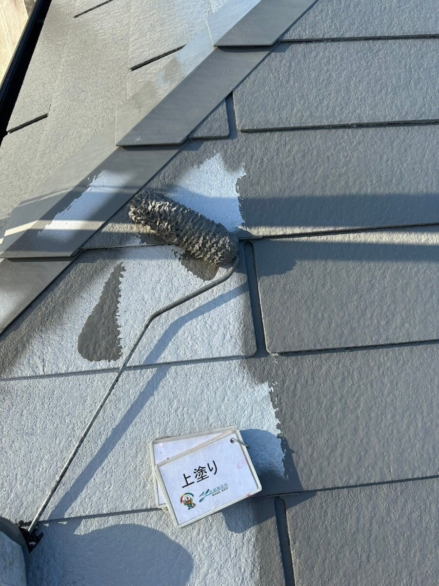 上塗りをすることにより、中塗りで生じた色むら等をなくし、さらに機能面でも効果がUPします。また上塗りにより最終的な屋根の美しさが決まります。