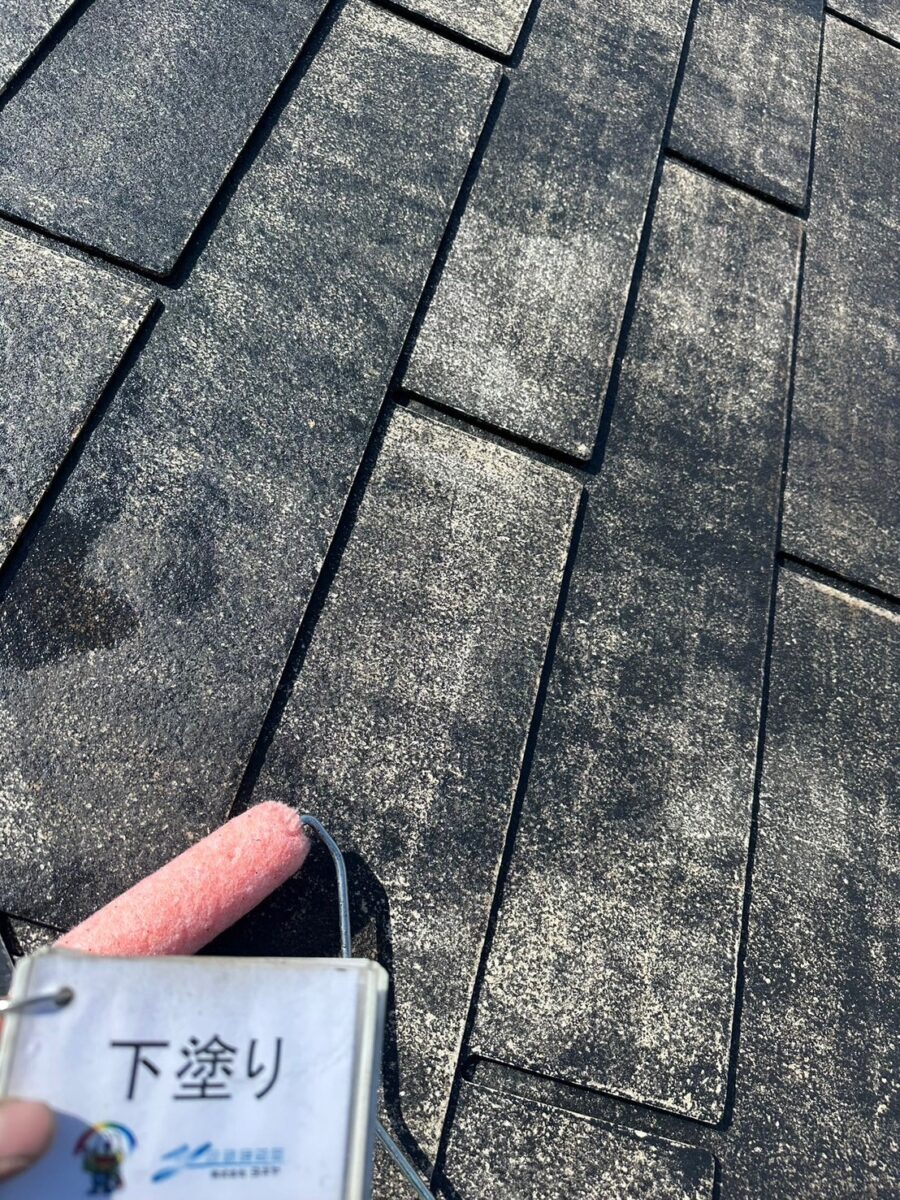 下塗りにより屋根材と中塗り塗料、上塗り塗料との密着を高め、塗料の機能を高める効果もございます。
