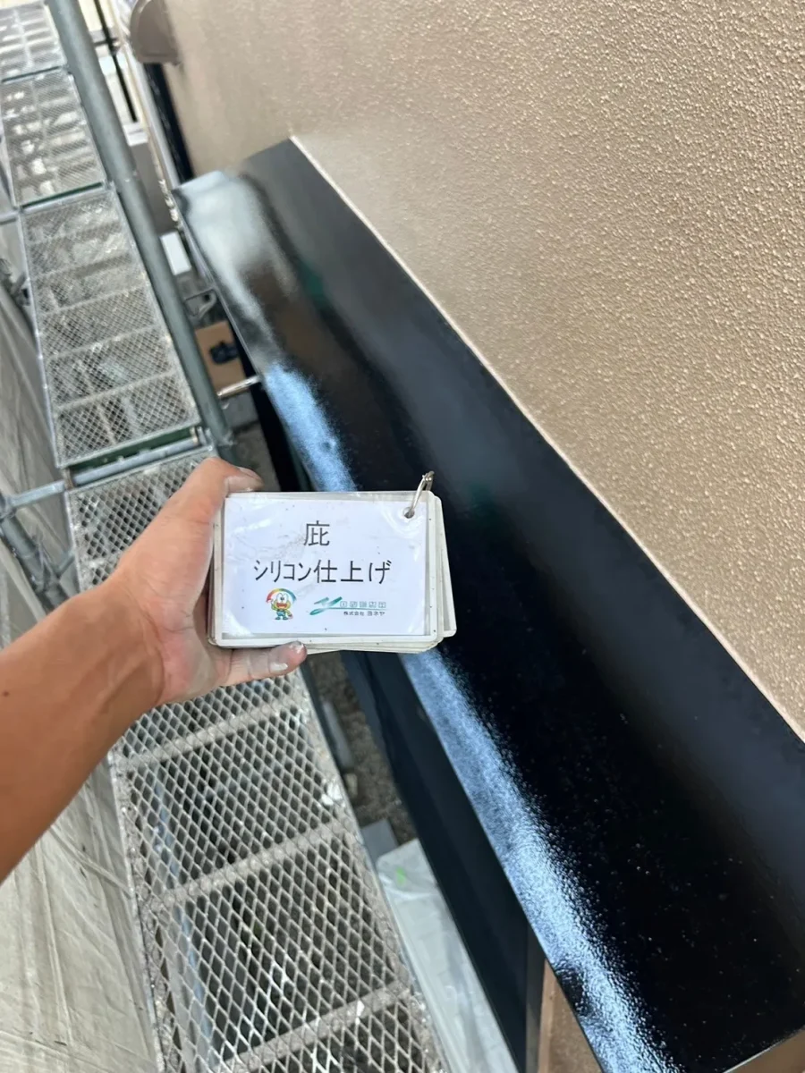 庇(付帯部)は劣化しやすいため丁寧にシリコンを2重で塗布します。