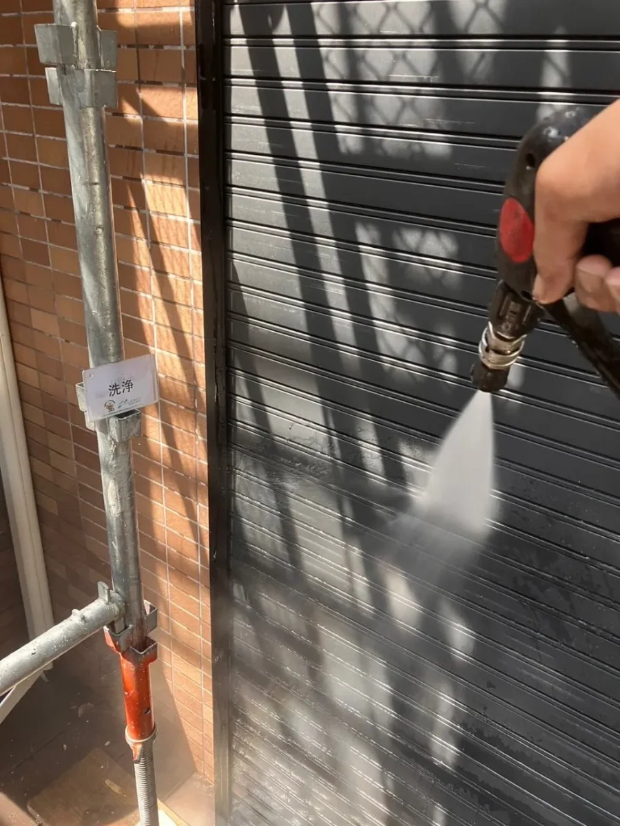 外壁塗装前に、外壁に付着している汚れや旧塗膜、埃、カビ等を高圧洗浄機を用いて洗浄します。これにより塗料の密着率が格段にUPし、美しい仕上がりにつながります。