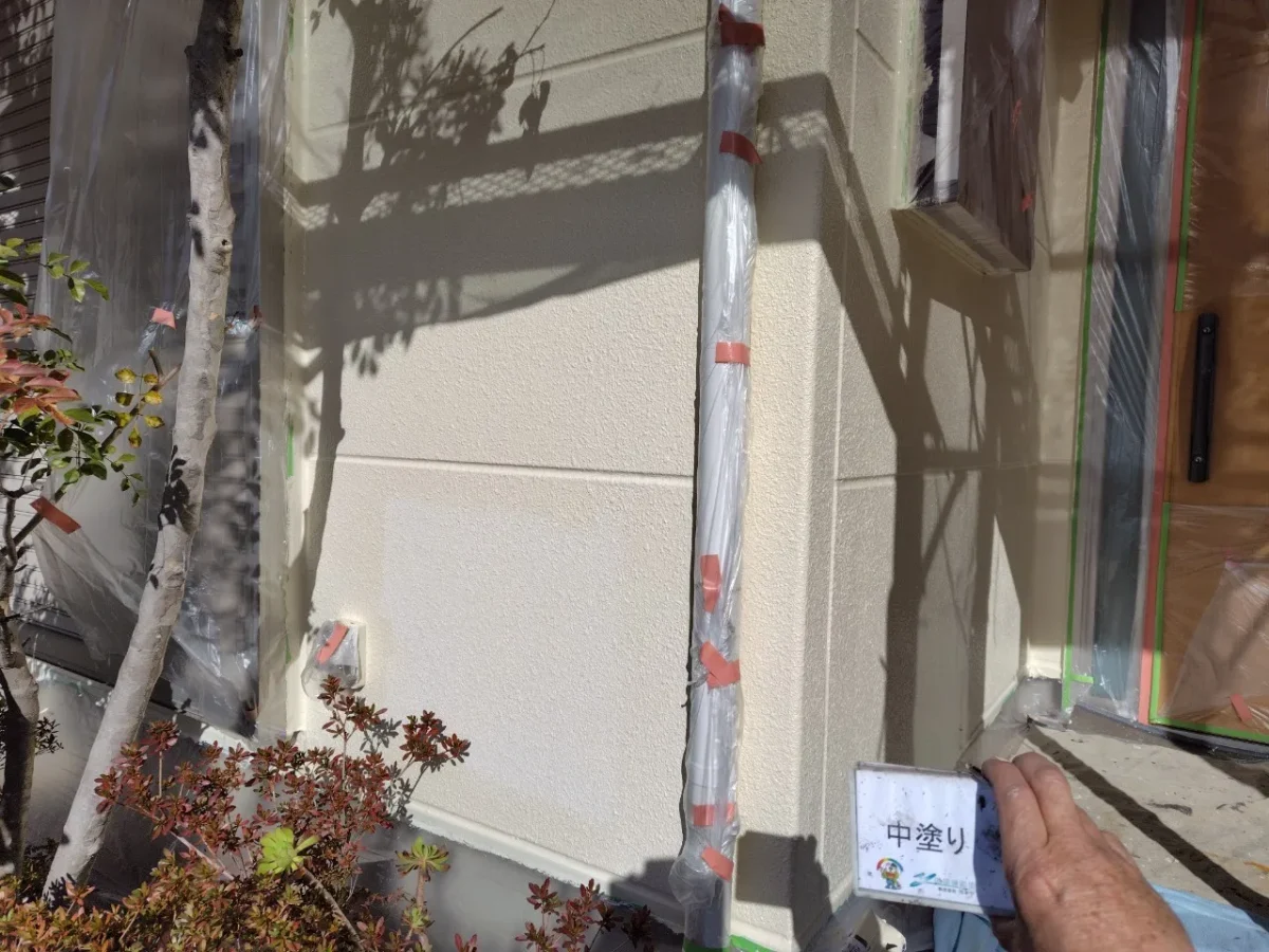 基本的には上塗り塗料と同じものを使用します。中塗りをすることにより塗膜が厚くなり強度が増し、さらに強く美しい外壁へと導きます。