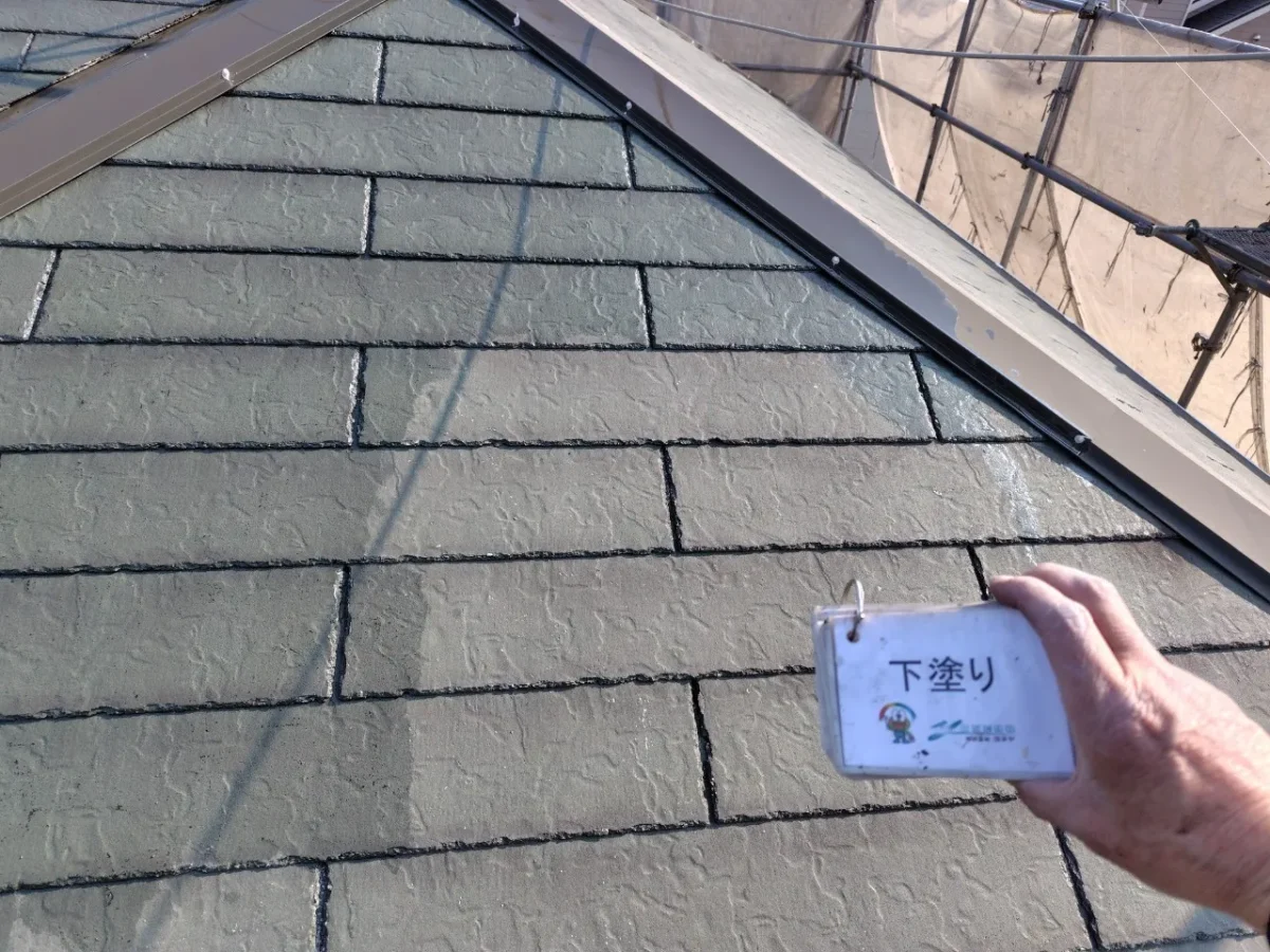 下塗りにより屋根材と中塗り塗料、上塗り塗料との密着を高め、塗料の機能を高める効果もございます。