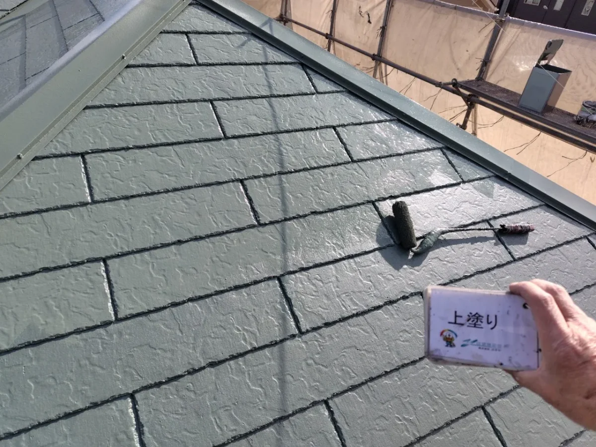 上塗りをすることにより、中塗りで生じた色むら等をなくし、さらに機能面でも効果がUPします。また上塗りにより最終的な屋根の美しさが決まります。