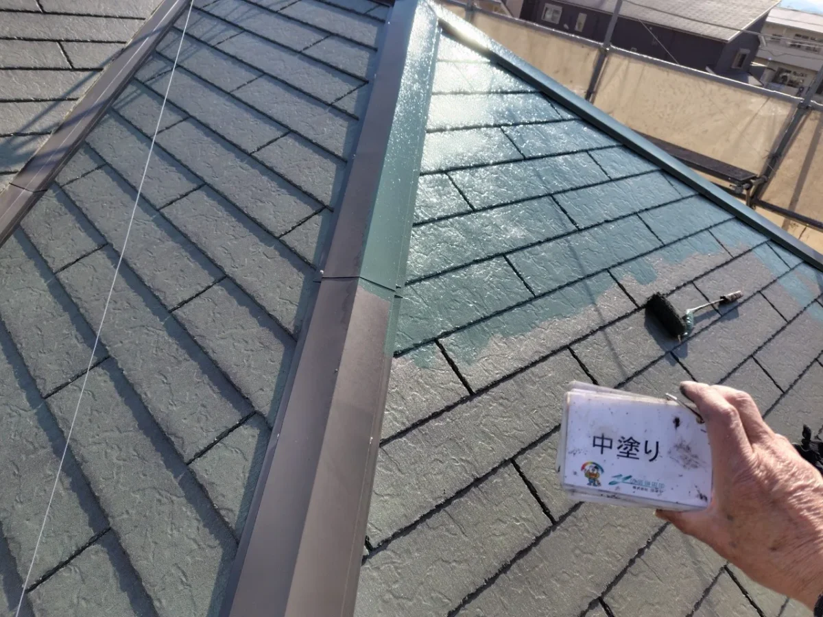 基本的には上塗り塗料と同じものを使用します。中塗りをすることにより塗膜が厚くなり強度が増し、ダメージを受けやすい屋根を強く美しく仕上げます。
