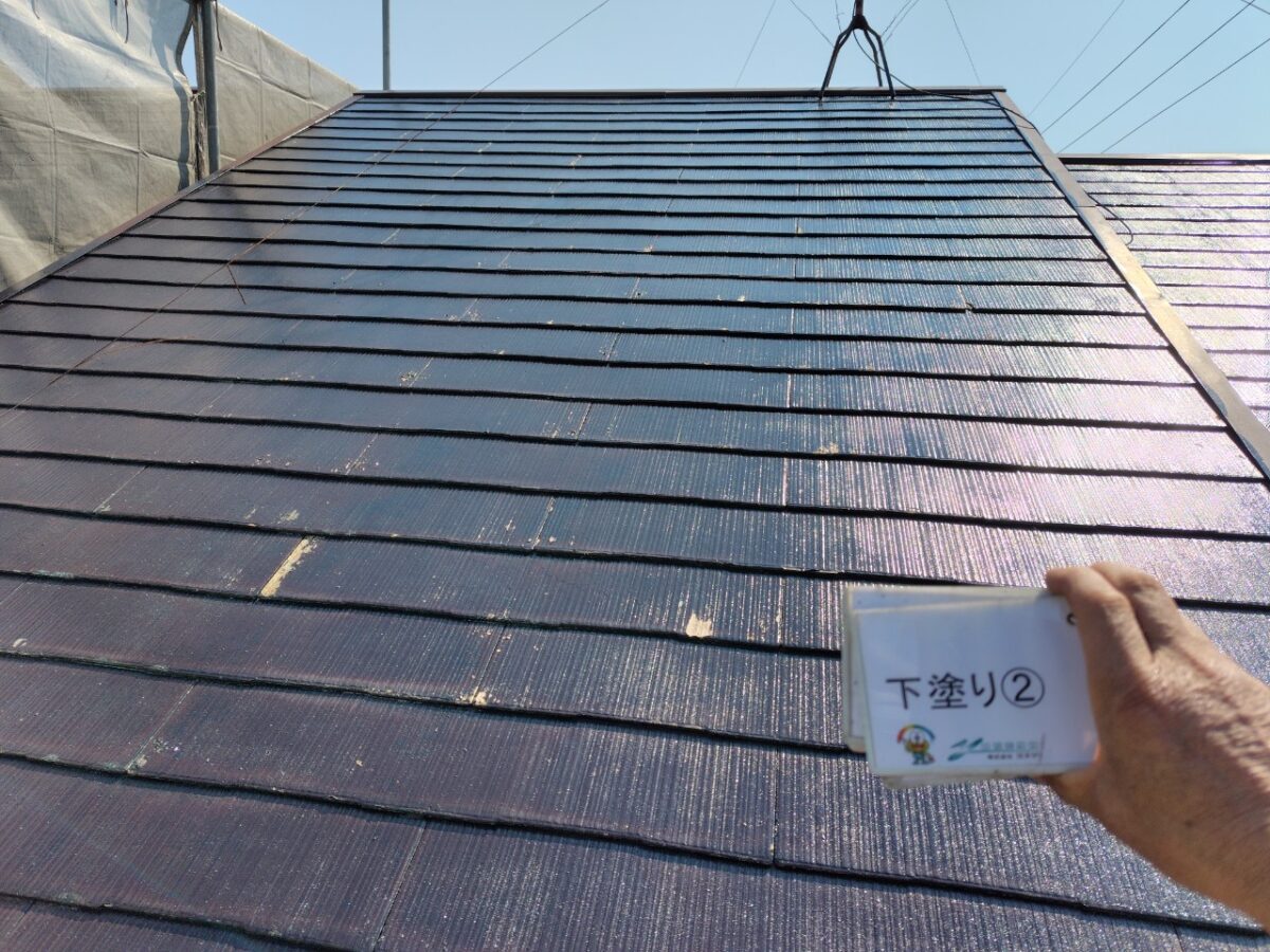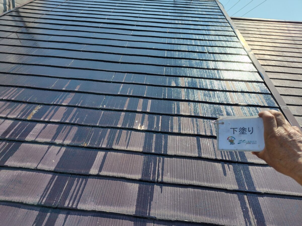 下塗りにより屋根材と中塗り塗料、上塗り塗料との密着を高め、塗料の機能を高める効果もございます。