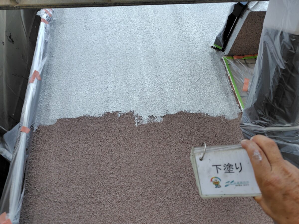 下塗りにより外壁材と中塗り塗料、上塗り塗料との密着を高め、塗料の機能を高める効果もございます。