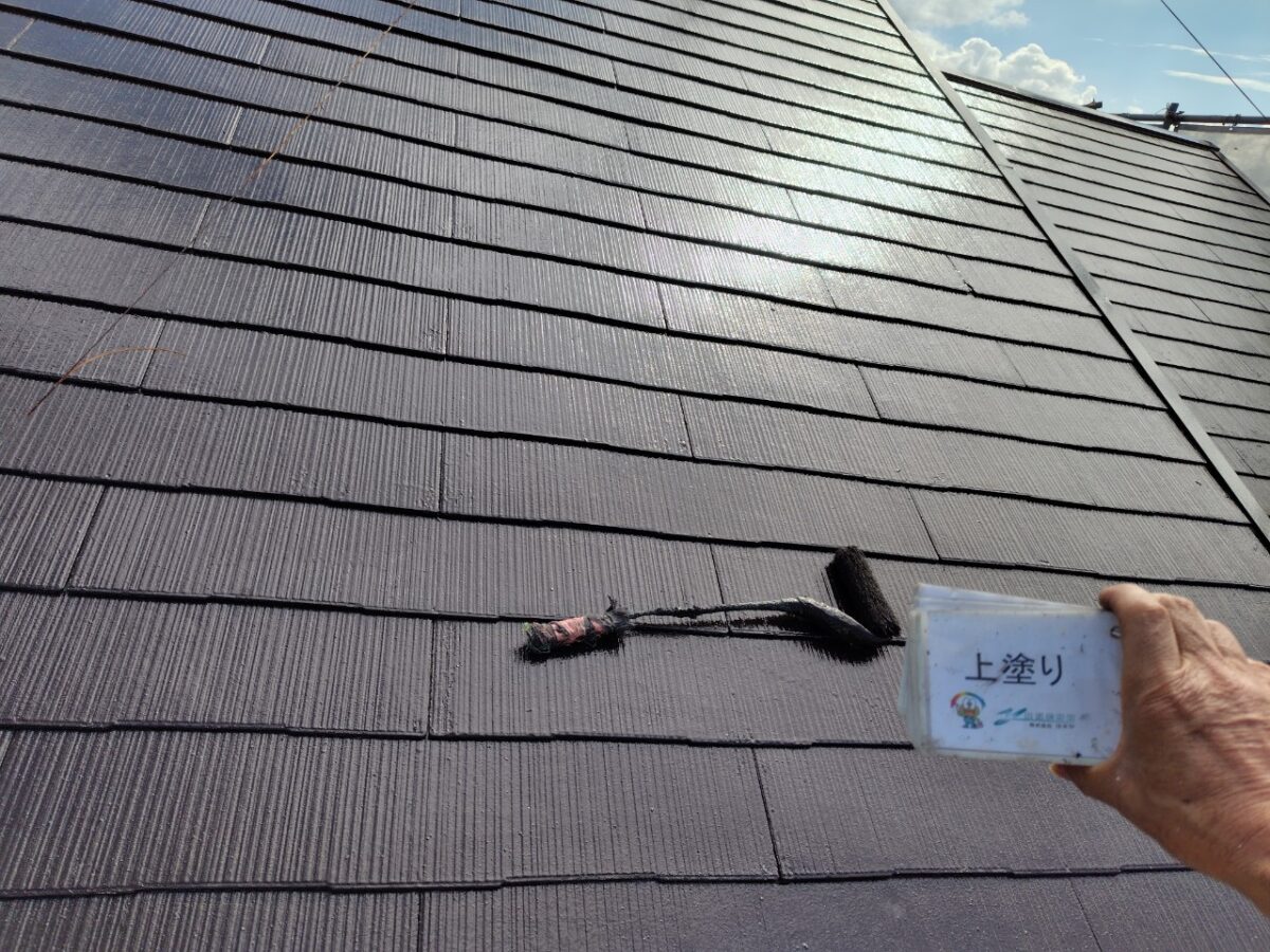 上塗りをすることにより、中塗りで生じた色むら等をなくし、さらに機能面でも効果がUPします。また上塗りにより最終的な屋根の美しさが決まります。