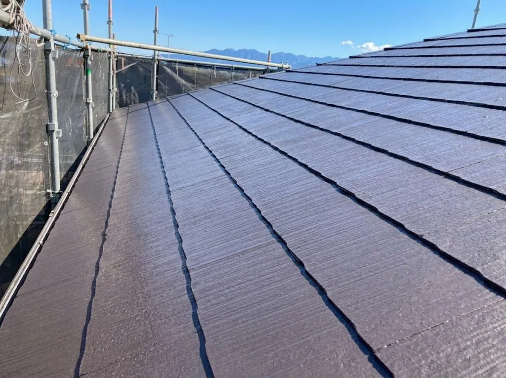 上塗りをすることにより、中塗りで生じた色むら等をなくし、さらに機能面でも効果がUPします。また上塗りにより最終的な屋根の美しさが決まります。