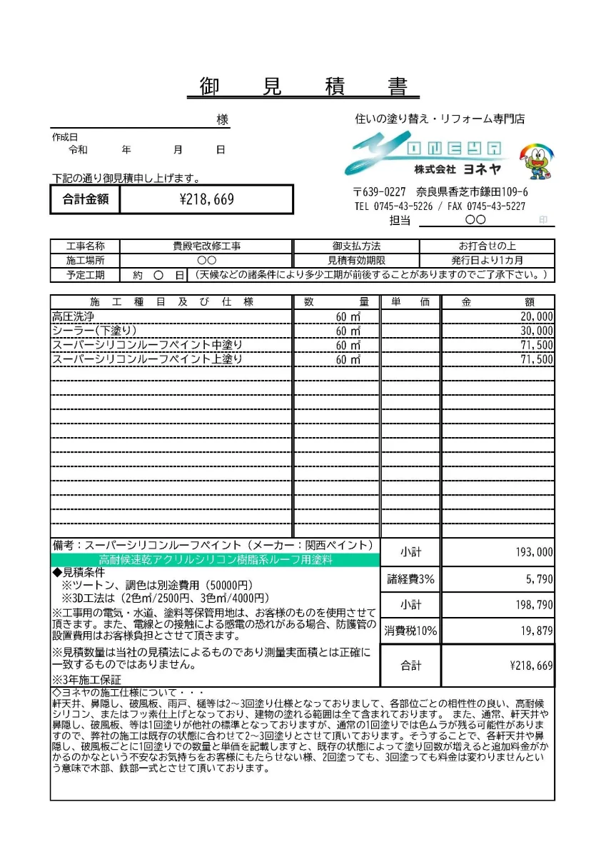 塗装専門店のヨネヤではお客様に心から納得して頂くために見積書を作成するだけでなく、その内訳を丁寧にご説明いたします。