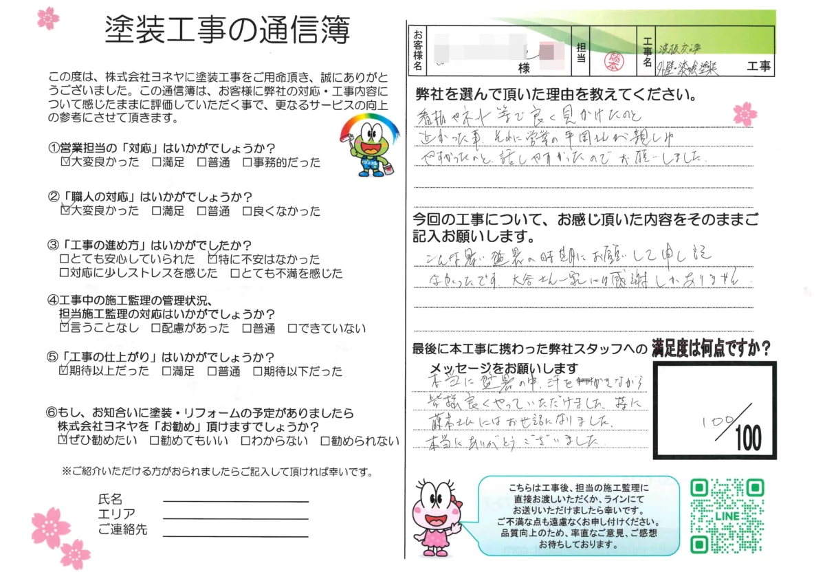 外壁塗装工事に対するお声を頂戴いたしましたのでご紹介させていただきます!